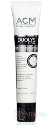 Duolys Riche hydratační péče pro suchou pleť díky komplexu, jehož základem je kyselina hyaluronová, znovu aktivuje proces regenerace buněk. Posiluje a udržuje pleť hydratovanou a obnovuje funkci ochranné bariéry, obě jsou nezbytné pro oddálení účinků stárnutí pleti. Bohatá krémová textura, obohacená o bambucké máslo a ceramidy, poskytuje suché pokožce pružnost a dlouhotrvající komfort. Pokožka je hydratovaná a chráněná, a tím je pevnější a zářivější.