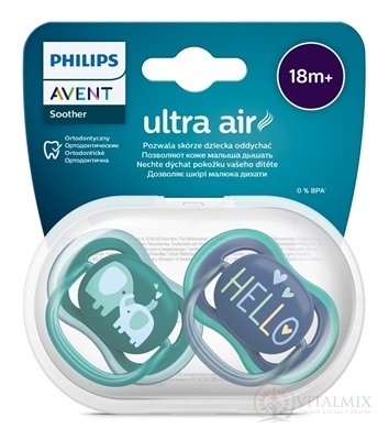 AVENT DUDLÍK Ultra air 18m+ kluk na utišování, silikon, obrazek slon 1x2 ks