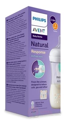- Umožňuje klidné a pohodlné krmení. Dudlík Natural Response podporuje přirozený rytmus sání, polykání a dýchání dítěte a ventil AirFree je navržen tak, aby odváděl vzduch z láhve na ochranu před kolikou, plynatostí a refluxem.