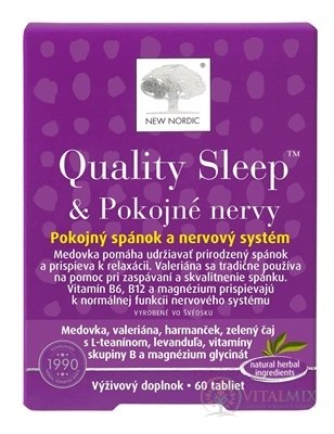 Objemová činidla (mikrokrystalická celulóza, dikalciumfosfát, zesíťovaná sodná karboxymethylcelulóza), extrakt z listu meduňky ( Melissa officinalis < em>L.) - 420 mg, extrakt z listu zeleného čaje ( Camellia sinensis < em> L.). Valeriana officinalis< em> L.) - 220 mg, hořčík (z magnézium bisglycinátu - 60 mg (16 %*), extrakt z květů heřmánku ( Matricaria chamomilla< em> L.) - 100 mg, povlakové látky (hořečnaté soly rostlinných mast glycerol), protihrudkující látka (oxid křemičitý), levandulový olej ( Lavandula angustifolia< em> Mill.) - 10 mg, extrakt z dlouhého pepře ( Piper longum< em> L.)- 10 mg, vitamin B6 (pyridoxin) - 5,6 mg 2,8 mg (255 %*), vitamin B12 (z methylkobalaminu) - 30 µg (1200 %*), vitamin B2 (riboflavin) - 2,1 mg (150 %*).