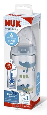 NUK FC+ LAHVE s kontrolou teploty 300 ml, silikonová savička flow control (6-18 měsíců) 1x1 ks