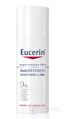 Laboratoře Eucerin vyvinuly Zklidňující krém speciálně pro potřeby citlivé pleti se sklonem k zarudnutí. Vhodný také jako doplňková péče při léčbě kuperózy a rosacey. Aktivní složka SymSitive* okamžitě zklidňuje podráždění pleti, protizánětlivý licochalcon A účinně působí proti zarudnutí.
