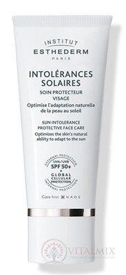 Krém na obličej s vysokou ochranou (SPF 50+), který snižuje citlivost hyperreaktivní pokožky a podporuje její postupnou adaptaci na slunce, při zachování ochrany před stárnutím pokožky způsobeným slunečním zářením