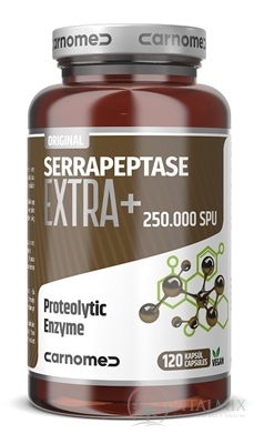 Veterinární přípravek, enzym serrapeptáza určený pro velká plemena psů a koně.