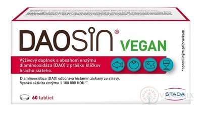 DAOSiN® Vegan je výživový doplněk s obsahem rostlinného enzymu diaminooxidázy (DAO) z klíčků hrachu setého. Diamínooxidáza (DAO) odbourává ve střevě histamin získaný ze stravy.