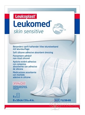 LEUKOPLAST LEUKOMED SKIN SENSITIVE textilní krytí s polštářkem, náplast sterilní, 8x10 cm, 1x5 ks