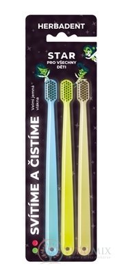 Nové zubní kartáčky HERBADENT STAR mají velmi jemná vlákna a jsou vyrobeny z fosforeskujícího materiálu, který při osvětlení svítí.