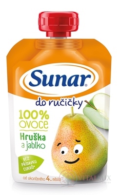 Sunar ovocné příkrmy jsou důležitou součástí pestrého jídelníčku dítěte. Jsou vyrobeny z dobře vyzrálého, vysoce kvalitního a pečlivě kontrolovaného ovoce. Pasterizovaný smíšený jablečně-hruškový příkrm pro kojence a malé děti od ukončeného 4. měsíce.