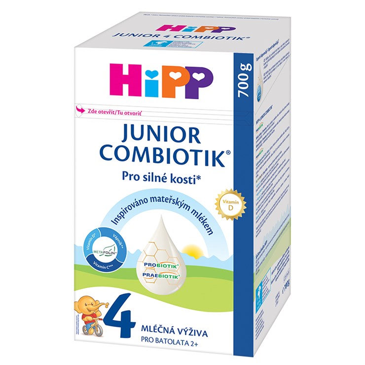 - HiPP 4 JUNIOR Combiotik® je určen k pití z hrnečku, pro děti od ukončeného 24. měsíce jako součást smíšené a vyvážené stravy.