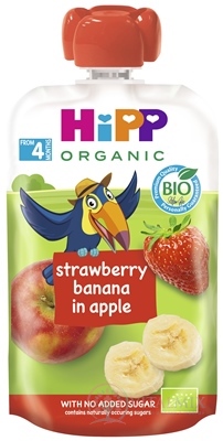 Složení: 100% ovoce*(jablka 60%, banány 20%, jahody 20%). *z ekologického zemědělství (Bio). Vice na adc.sk