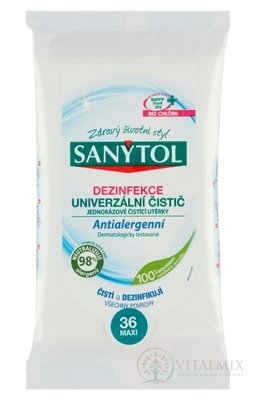 Baktérie, plesne a vírusy sú mikroskopické organizmy na povrchoch. Pokiaľ nie sú zničené, môžu byť príčinou infekčných ochorení. Domáce alergény môžu vyvolávať respiračné alebo kožné alergie najmä atopikom. Sanytol, expert dezinfekcia bez chlóru, vyvinul praktické univerzálne utierky, ktoré čistia, dezinfikujú a neutralizujú alergény z roztočov, mačiek a peľov s 98% účinnosťou. Eliminujú baktérie, vírusy a plesne (zdroje alergií) zo všetkých druhov povrchov. Jeho jedinečné zloženie nespôsobuje škvrny a zanecháva sviežu vôňu čistoty. Odstraňujú okrem iného: Escherichia coli, Herpes simplex virus, Staphylococcus aureus, Virus de la grippe H1N1, Candida albicans, Aspergillus niger, Pseudomonas aeruginosa, Enterococcus hirae.