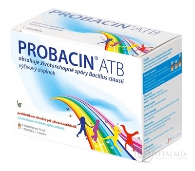 Probacin®ATB obsahuje spóry probiotické bakterie Bacillus clausii doplněné arabinogalaktanem (prebioti kum).