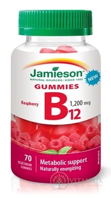 Doplněk stravy. Vitamin B12 v želatinových pastilkách s přírodní malinovou příchutí.< p>
