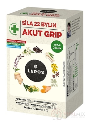 Černý pepř (12,7 %), zázvorový oddenek (10,1 %), lipový květ (8,4 %), hřebíček (7,6 %), kurkumový oddenek (6,8 %), křen (5,9 %), přírodní aroma (5,2 %), badyán (4,6 %), ja %), ženšen (4,2 %), šalvěj (4,2 %), kůra cejlonské skořice (4,2 %), saturejka (2,5 %), květ ibišku súdánského (2,5 %), pomerančová kůra (2,5 %), máta (1,7 %), kořen (1,7 %), eukalyptus (1,7 %), stévie (1,7 %), kyselina citrónová (0,5 %), citrónová kůra (0,4 %), chilli (0,4 %). Vice na adc.sk