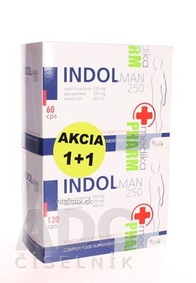 INDOL MAN 250 - je doplněk stravy, obsahuje 250 mg účinných látek a vitamín D.