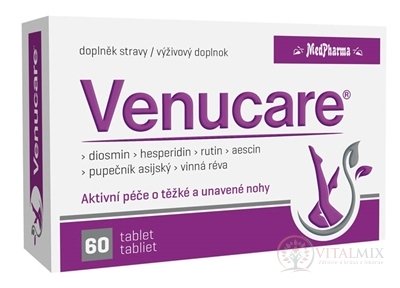 Složení: diosmin (extrakt z citrusových plodů), objemové činidla (uhličitan vápenatý, mikrokrystalická celulóza), hloh pereňoklaný (Crataegus pinnatifida - extrakt z listů), jírovec maďal (Aesculus hippocastanum - extrakt z plodů) s 20% obsahem aescinu, borovice přímořská ( Pinus pinaster - extrakt z kůry), hesperidin (extrakt z citrusových plodů), réva vinná (Vitis vinifera - extrakt ze semen), pupečník asijský (Centella asiatica - extrakt z byliny), stabilizátory (kroskarmelóza sodná, hypromelosa, polydextrosa, karboxymethylcelulóza sodná) , rutin (zdroj jerlín japonská Sophora japonica), kukuřičný škrob, leštící látka (polyvinylalkohol), protispékavé látky (dioxid křemičitý, stearan hořečnatý, mastek), zvlhčovadlo (polyethylenglykol), barviva (oxid železa červený,
