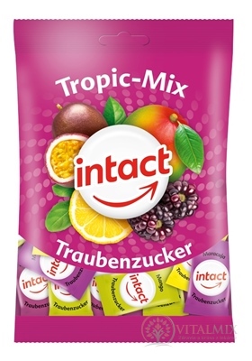 Směs bonbónů s hroznovým cukrem s příchutí citron, mango, maracuja a ostružiny.