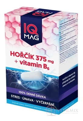 1 tobolka obsahuje: hořčík (oxid hořečnatý) 375 mg (100% RVH), vitamin B6 (pyridoxin hydrochlorid) 1,4 mg (100% RVH).