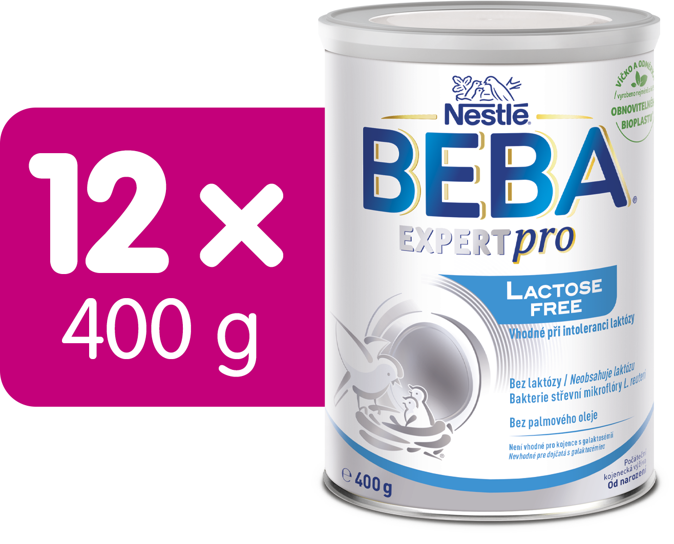 NESTLÉ BEBA EXPERTpro Lactose free je počáteční mléčná kojenecká výživa určená k dietnímu postupu při nesnášenlivosti laktózy (mléčného cukru) a pro realimentaci po průjmech. Obsahuje unikátní kombinaci složek, jejichž účinky byly klinicky testovány: