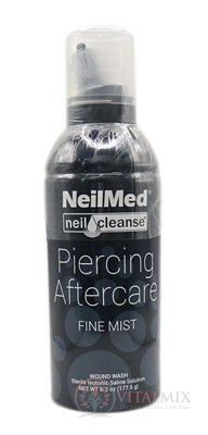 Špičková přírodní, veganská a sterilní péče o piercing ve fyziologickém roztoku bez konzervačních látek k ošetření drobných poranění a piercingu. NeilMed Piercing Aftercare umožňuje uživatelům nastříkat fyziologický roztok přímo na piercing namísto namáčení piercingu do solné koupele nebo používání