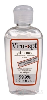 Čistící gel na ruce s antimikrobiálním a antivirotickým složením.