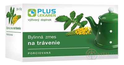 Složení: řepík lékařský (nať), máta peprná (nať), řebříček obecný (nať), artyčok zeleninová (nať), růže šípková (plod), Andělika lékařská (kořen), měsíček lékařský (květ).
