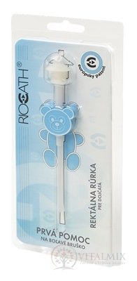 Rektální trubka Riocath® je určena k odvodu nashromážděných plynů v případě výskytu tzv. „tříměsíční koliky kojenců.Délka zavedení je 2,5 cm a použití je tak maximálně bezpečné.