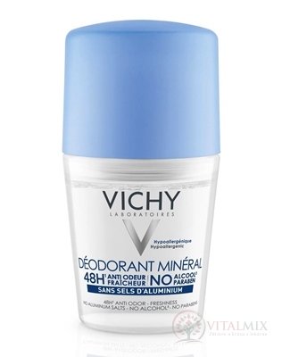 Deo roll-on pro citlivou pleť poskytuje 48h komfort a eliminaci zápachu a svěžest se silou Termálnejvody Vichy bohaté na minerály.