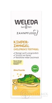 Dětský zubní gel s obsahem výtažku z květů měsíčku, kyseliny křemičité, silice máty a fenyklového oleje.